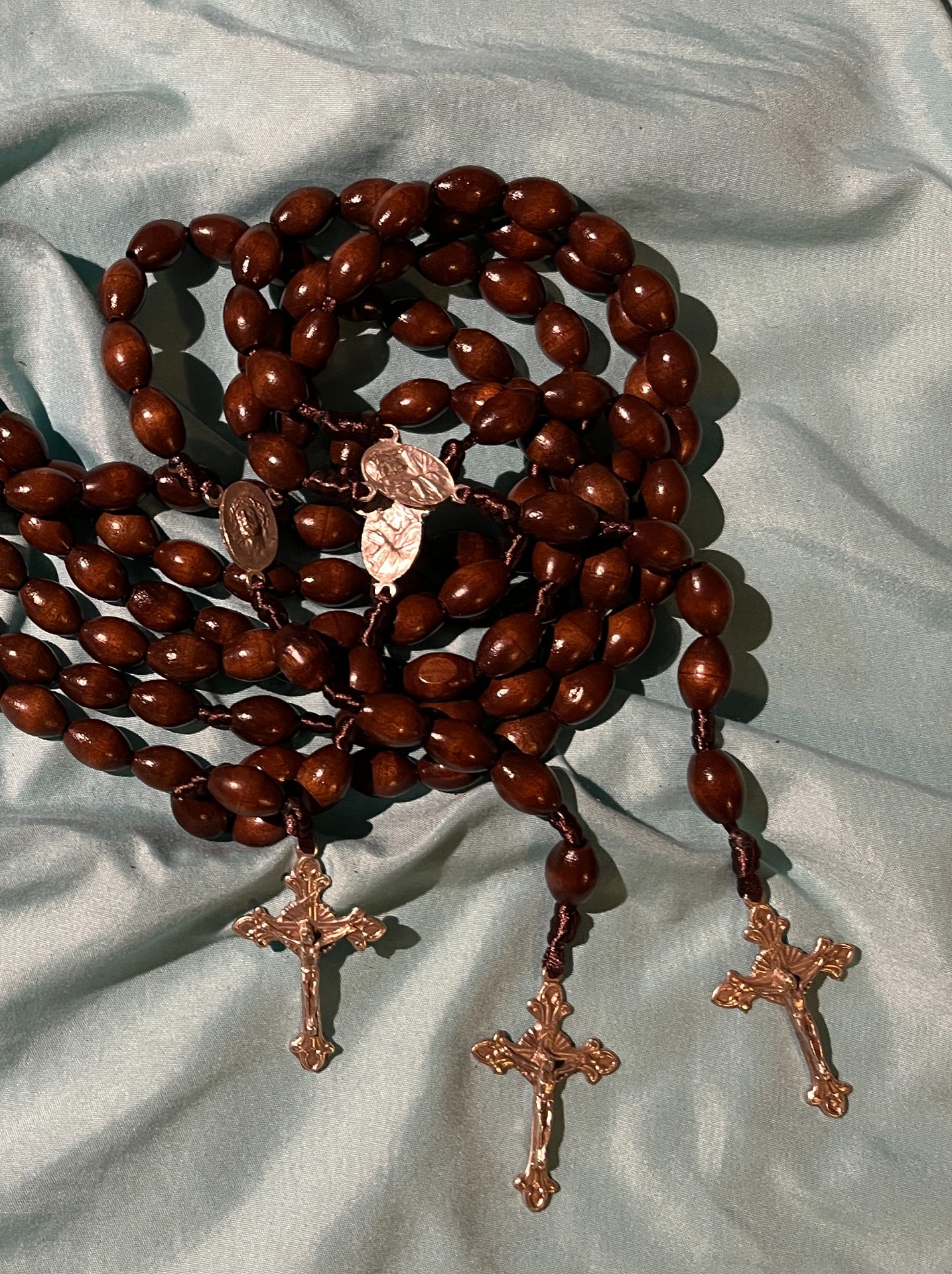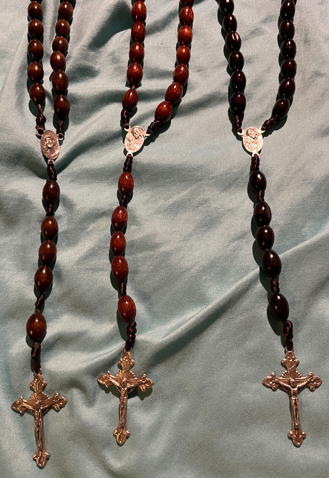 Ořechová: Teplý, přirozený odstín dřeva, který působí klidně a tradičně. Ořechová varianta je ideální pro toho, kdo hledá klasiku bez okázalosti – růženec dobře padne do ruky a bude tě provázet každý den.